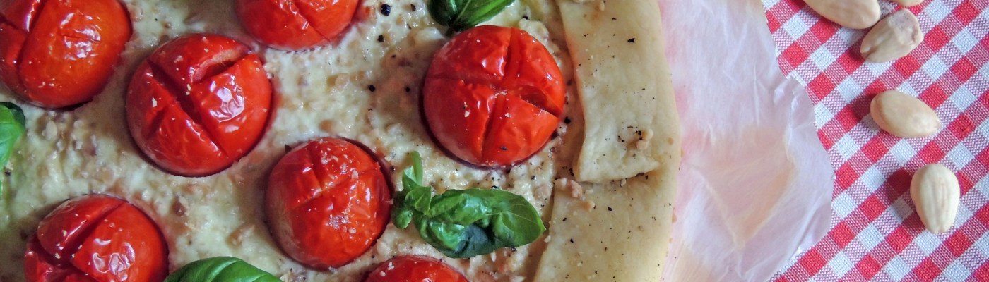 Friabile pasta brisée racchiude un cuore morbido di ricotta, arricchito da una manciata di mandorle tostate e tritate… i pomodorini interi e appena incisi e una spolverizzata di pepe guarniscono la superficie di questa profumatissima torta salata! Ideale per cena o servita in piccole porzioni come finger-food! ^_^