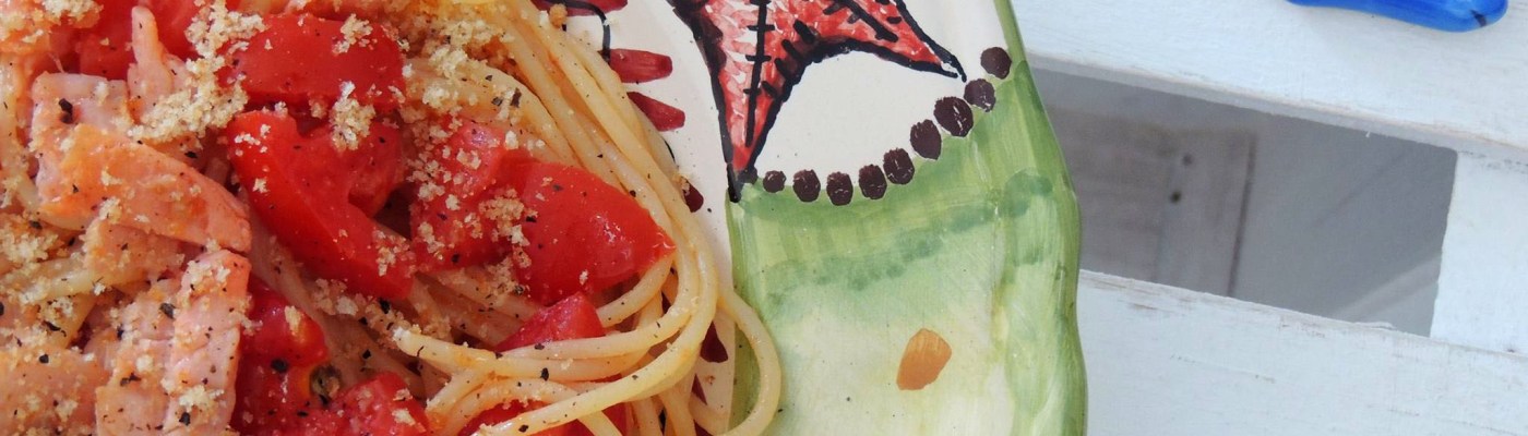 Ricetta molto semplice e veloce, salmone affumicato, pomodori freschi e la nota piacevole e croccante del pangrattato tostato…pochi ingredienti e tanto gusto! ^_^