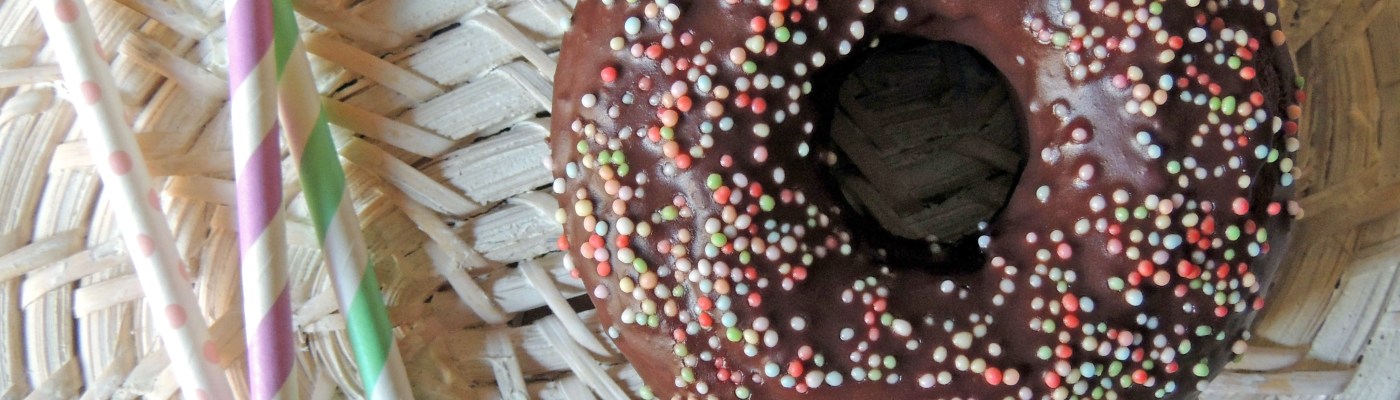 Irresistibili ciambelline al cacao e nocciole coperte da una glassa al cioccolato fondente e una vivace cascata di zuccherini colorati! Ideali per un’allegra merenda! ^_^