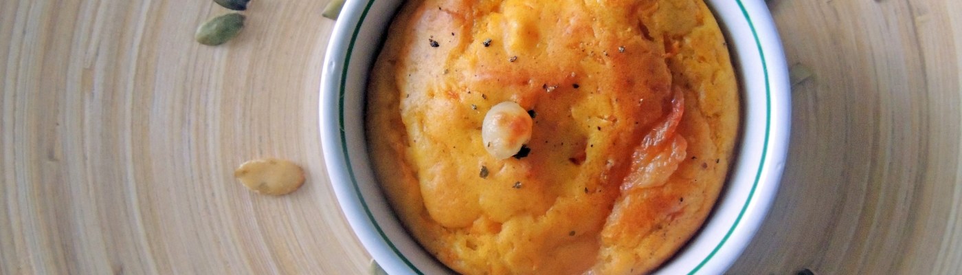 Soffici tortini farciti con polpa di zucca e scamorza affumicata, serviti in cocottine monoporzione. Delicato e delizioso antipasto! ^_^