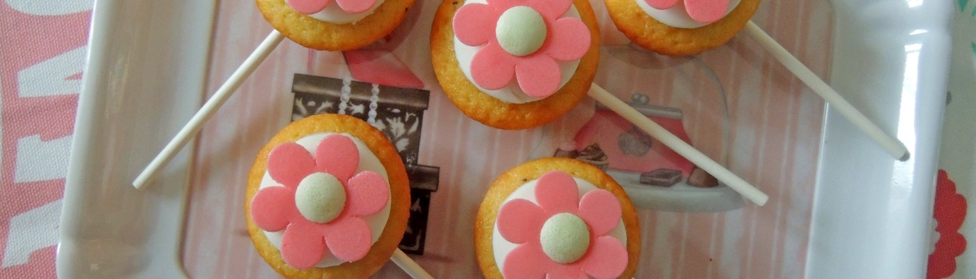 Mini cupcake decorati con una piccola base di pasta di zucchero e margheritine di ostia, infilati in un bastoncino per ricreare l’effetto lecca-lecca. Pronti per essere gustati o confezionati e personalizzati ^_^