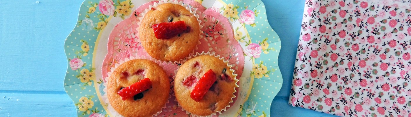 Soffici tortini profumati al limone farciti con pezzettini di fragole fresche e gocce di cioccolato fondente. Ideali per una merenda vivace, sana e golosa!😋