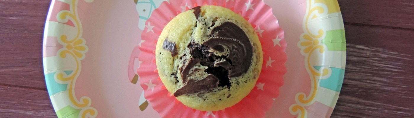 Versare all’interno di ogni stampino prima un cucchiaio di preparato alla vaniglia e nel mezzo un cucchiaino al cacao. Con uno stuzzicadenti muovere gli impasti per creare l’effetto “variegato”.