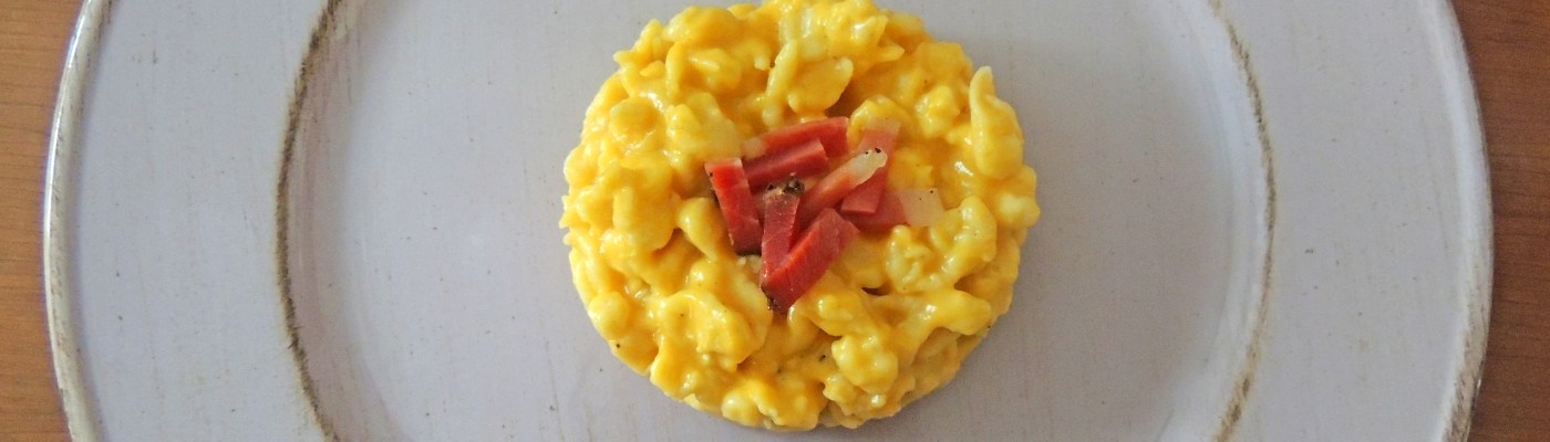Gli spatzle sono gnocchetti originari della Germania meridionale ma molto diffusi in Tirolo, Svizzera e Trentino Alto Adige. Ho preparato gli spatzle (con l’apposita grattugia) conditi con una delicatissima crema di zucca e Philadelphia e guarnito il piatto con bastoncini di speck croccante. Golosi e piacevoli sono ideali per un pranzo domenicale d’autunno. 😋
