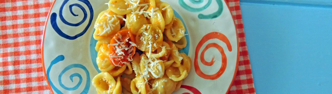 Primo piatto delicato e goloso, la dolcezza della salsa di pomodorini gialli (cotti in forno) incontra la nota vivace del cacioricotta, le orecchiette raccolgono alla perfezione il condimento😋. Una realizzazione velocissima per un risultato sorprendentemente profumato e invitante, ideale per una cena d’estate!😊