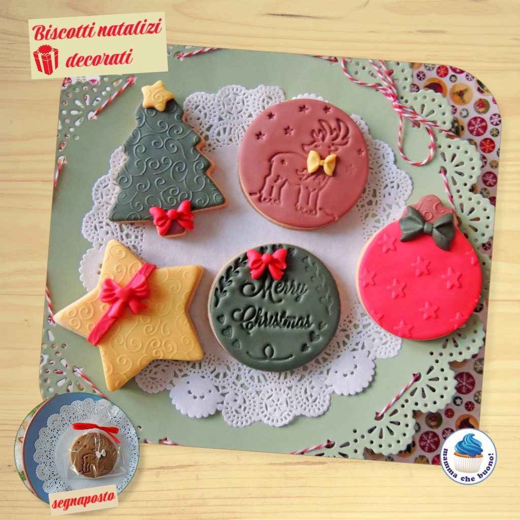 Biscotti di pasta frolla profumati alla vaniglia e cannella, realizzati con formine natalizie, decorati con pasta di zucchero e zuccherini vari. Ideali per comporre dei graziosi pensierini fatti in casa o per personalizzare la tavola di Natale assegnando ad ogni ospite un biscottino confezionato in un sacchettino.