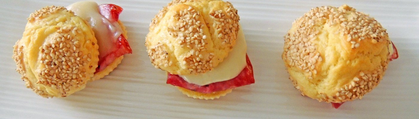 Divide a metà i tortini e farcirli con una fettina di salame e una di caciocavallo.