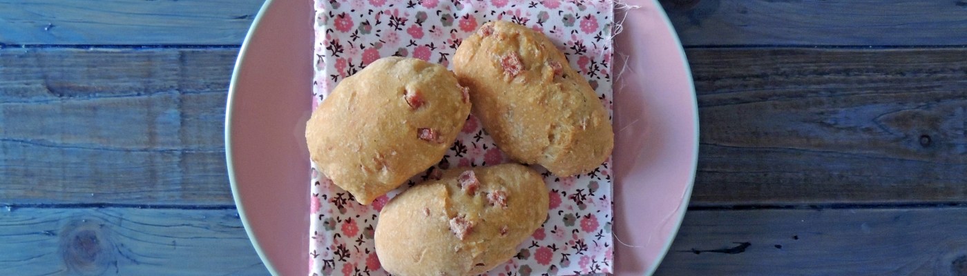 Piccoli panini preparati con farina integrale di avena e farciti con dadini di prosciutto cotto. Sfiziosi e dal profumo invitante, sono ideali come finger-food o per arricchire il cestino del pane.