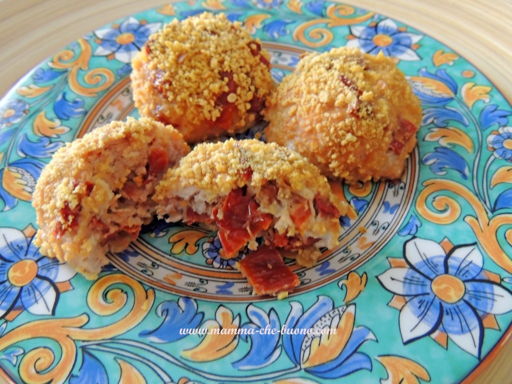 Sfiziose polpette di pesce spada e pomodori secchi, avvolte da una croccante panatura e cotte in forno. Leggere e saporite sono un ideali servite come finger-food o secondo piatto accompagnate da una fresca insalatina.