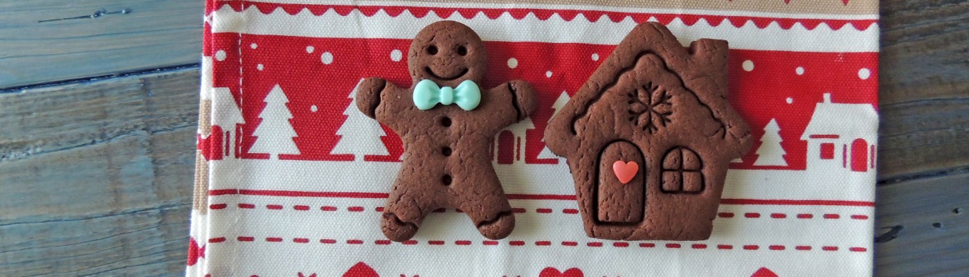 Golosi biscotti dal sapore intenso di cacao, preparati con olio di semi , sono leggeri e adatti a chi non può consumare latte e derivati. Realizzati con alcuni stampini natalizi e decorati con qualche dettaglio di pasta di zucchero colorata. Sono ideali come dono, confezionati in in sacchettino o in una scatolina.