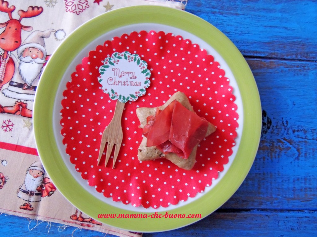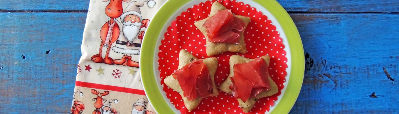 Sfiziose focaccine preparate con una parte di farina ai cereali e realizzate a forma di stellina. Accompagnate da fettine di bresaola, sono un piacevole finger-food per l’aperitivo o l’antipasto di Natale.