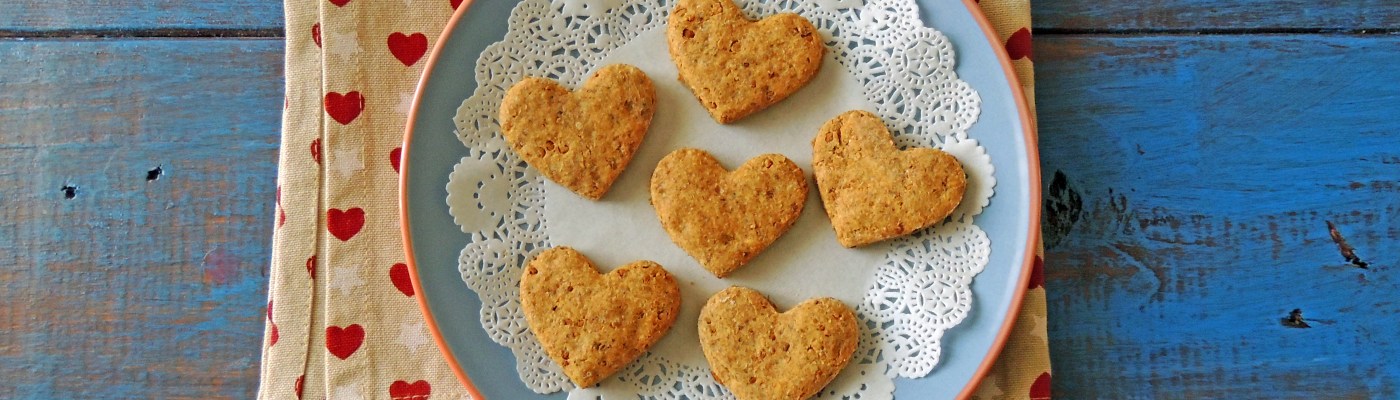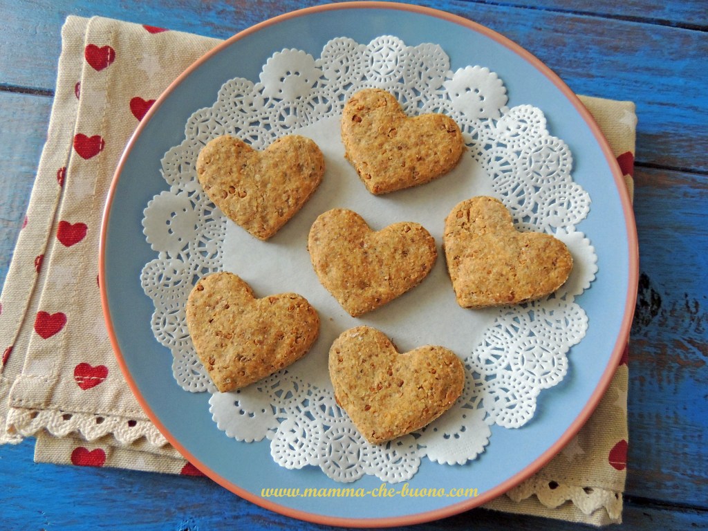 Stendere l’impasto, su una spianatoia leggermente infarina, con l’aiuto di un mattarello. Ricavare le forme desiderate con un apposito taglia-biscotti (il mio a forma di cuore).