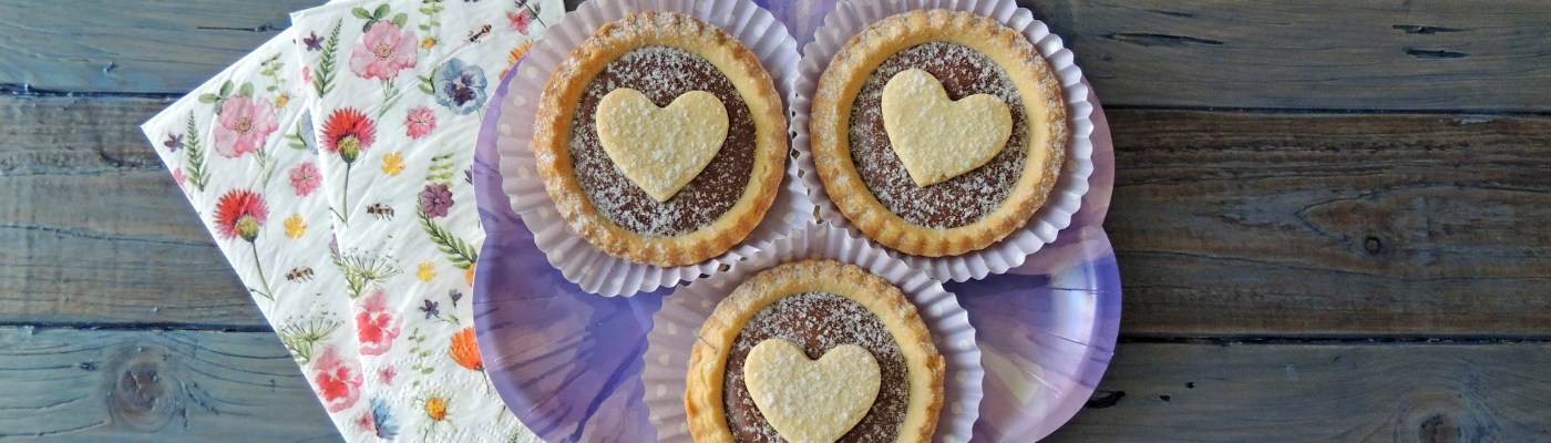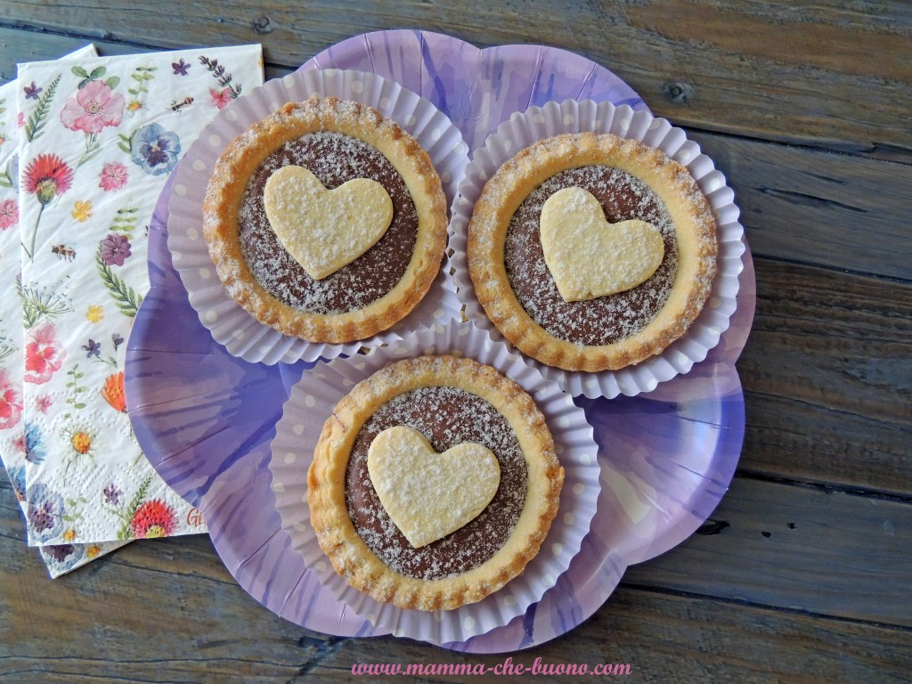Golose crostatine farcite con Nutella (preparate con una parte di farina di mandorle), ideali per la merenda, la colazione o piccolo dessert.