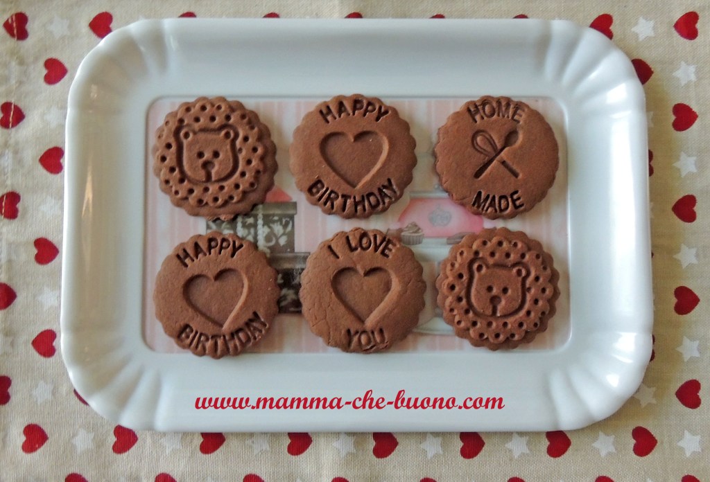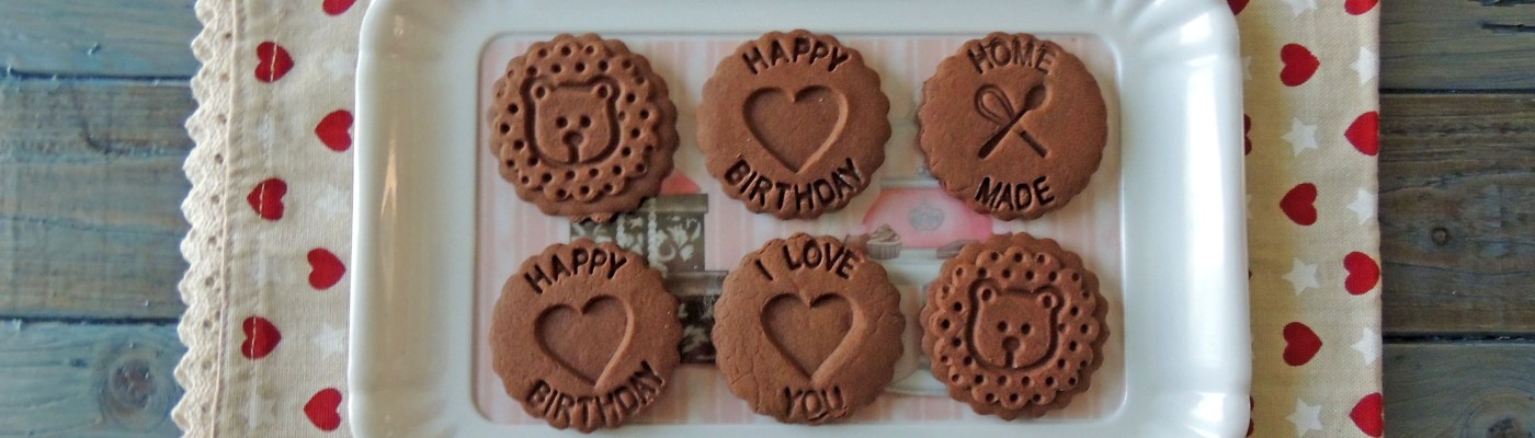 Frollini al cacao realizzati con dei timbri per biscotti. Non si deformano in cottura e si prestano a varie decorazioni. Profumati e golosi, sono ideali per la colazione o la merenda. Confezionati all’interno di una scatolina, diventano un gradito pensiero.
